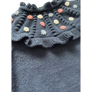 SAYLOR Preppy Embroidered Floral Pom-Pom Ruffled Sweater Size XS