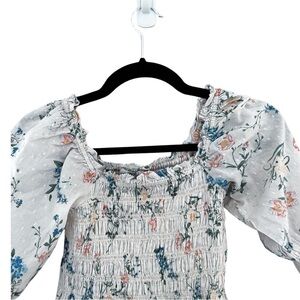 SAYLOR Puff Sleeve Blouse Top Size Small Boho Crop Blue Pink Cream Floral Sz M