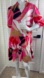 This dress features a bold pink and red pattern with white accents. Perfect for making a statement in good condition a very small stain see pictures please thank you
