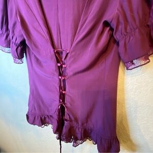 Features: This type of Renaissance style blouse is designed with short puff sleeves, V neck, button placket, lace-up back and ruffled cuffs.