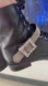 Stylish black combat boots with a striking rhinestone buckle. Perfect for adding edge to any outfit.