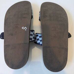 SCHUTZ Enola Sporty Blue Leather Bamboo Gold Buckle Sandal Slide 8.5