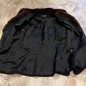 SHANI Mink Collar Jacket Blazer Style Belted Size 10 Black Brown Lined FLAWLESS