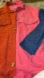Vibrant colorblock corduroy jacket with button closure. Features red, pink, green, and blue panels. Oversized look so if you are a medium or large this will fit