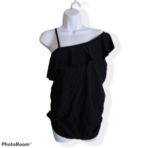 SHEIN One Shoulder Ruched Ruffle Tankini Swim Top.