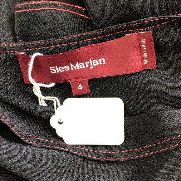 Description: Sies Marjan Black / Red Contrast Stitching Long Sleeved Silk Crepe Midi Dress.