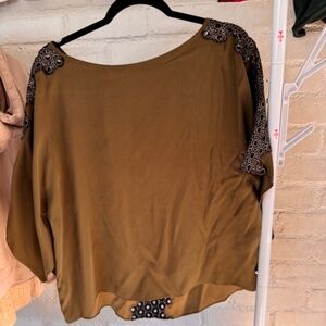 This is a quintessential dinner date shirt - it's gorgeous, silk with thoughtful embellishment