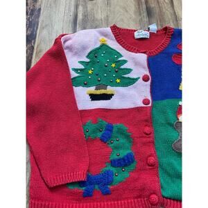 SJ Designs Women's Red Ugly Christmas Button Front Cardigan Sweater Size XL