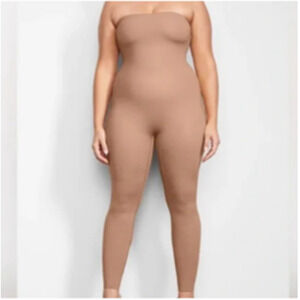This NWT SKIMS All in One Sleeveless Jumpsuit provides full body support. It can be worm alone or underneath your outfit and features a straight strapless neckline and a power mesh lining to smooth, support, and sculpt your curves.