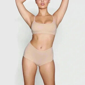 SKIMS Fits Everybody bralette, scoop neck bralette, seamless bralette XL, nude bralette, clay SKIMS, adjustable strap bralette, everyday comfort lingerie, lightweight pullover bralette, soft nylon bralette, stretchy seamless bralette .