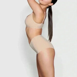 Experience the buttery-soft comfort of the SKIMS Fits Everybody Scoop Bralette in Clay, size XL. Made with 79% nylon and 21% spandex, this lightweight bralette offers a second-skin feel that molds to your body. The scoop neck design with adjustable straps ensures both style and support, while the pullover fit gives a smooth, seamless look under clothing. Perfect for everyday wear or lounging, this piece delivers lasting comfort and coverage.