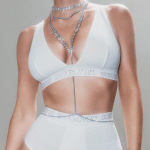 SKIMS x SWAROVSKI COTTON RIB PLUNGE BRALETTE AND BRIEF UNDERWEAR FULL SET!