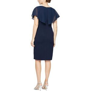 SL Fashions Women's Sheer-Overlay Sheath Dress, Navy, Size 8