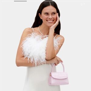 • Feather-trimmed neckline
