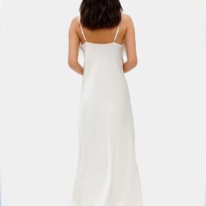 SLEEPER Boheme Feather-trimmed Midi Slip Dress in Ecovero White