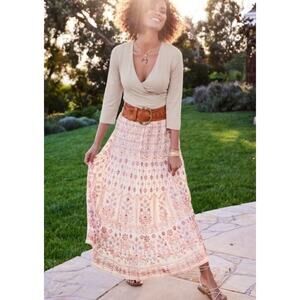 SOFT SURROUNDINGS white orange pink embroidered Inez long maxi skirt India