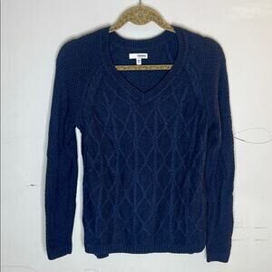 SONOMA Navy Cotton Blend V Neck Knit Sweater Size Small. Stylish cable knit design. V-neck for a classic look. Perfect for layering. Light wash wear overall in GUC.