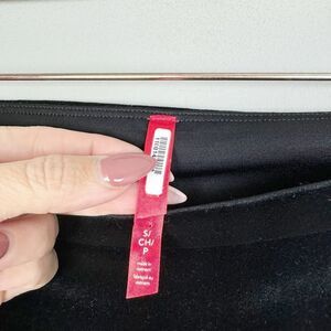 Amazing and trendy black velvet leggings by Spanx. These are super popular for a reason! Slimming and comfortable! Pair them with just about anything! Dress them up or down. No fabric tag - cut it out. Womens size small.