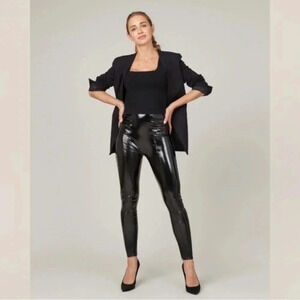 Faux Leather that flatters. This style features high-shine, smoothing faux patent leather fabric and a hidden contoured waistband. This style was designed with a unique finish that gives them their rich color and shine.