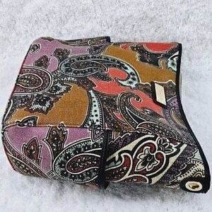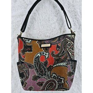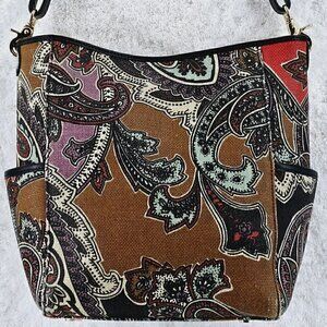 SPARTINA 449 Daufuskie Island Paisley Print Linen Black Leather Shoulder Bag