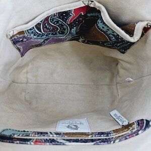 Paisley Print Linen Body, Black Smooth Leather Strap and Trim