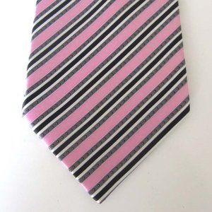 STEFANO RICCI pink/blk/white striped tie 100% silk
