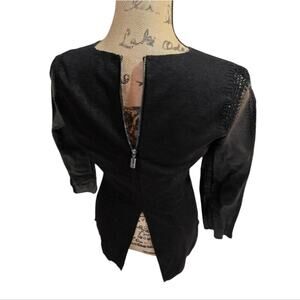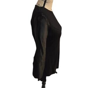STELLA & JAMIE Genuine Leather Sleeve Crochet Top Stretch Tunic Black Small