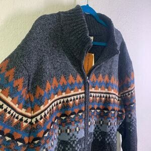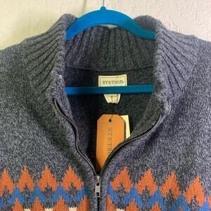 STETSON Sweater Cardigan Full Zip Mock Neck Western Navajo Cotton Wool NWT
