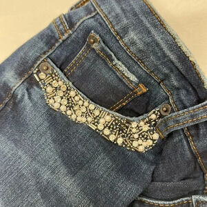 STS Blue Emma Denim Jeans Skinny Fit Ankle Pearl Diamond Embellished Size 28