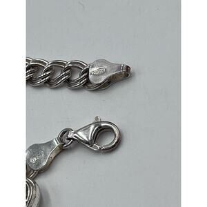 Sterling Italy Double Link Charm Bracelet With Heart Charm Length- 7 1/4"