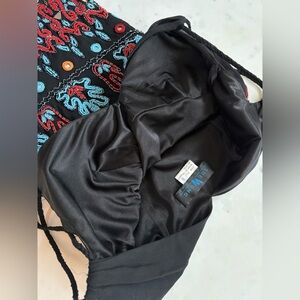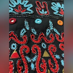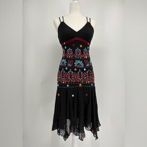 SUE WONG NOCTURNE Vintage Boho Southwest Beaded Silk Dress 6 Y2k Asymmetrical
