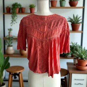 This SUNDANCE orange blouse in size small is beautifully embroidered, offering a unique and stylish appeal. Made from soft, breathable fabric, it ensures comfortable all-day wear.