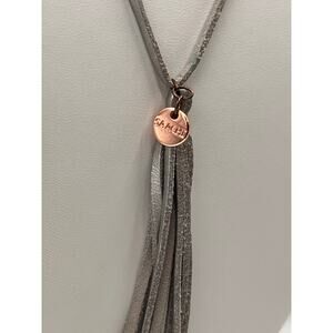 Saachi Gray Metallic Suede Leather Faceted Glass Dangle Rose Gold Necklace