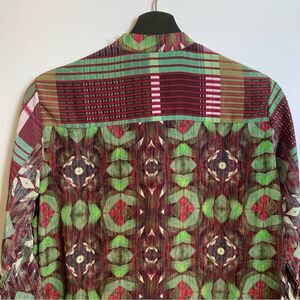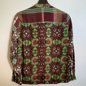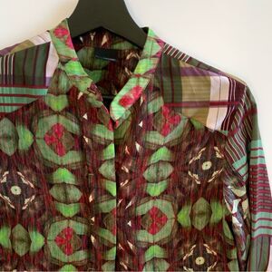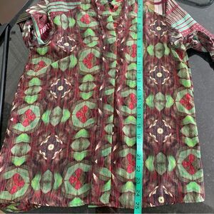 Sacada Abstract Red Green Long Sleeve Button Up Top Size Small