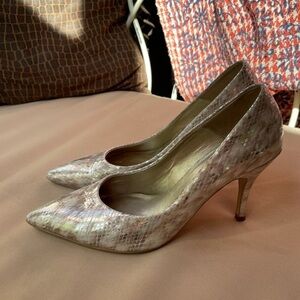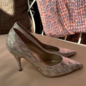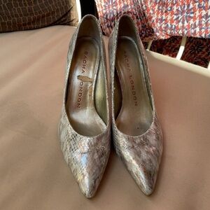 Sacha London Snake Leather Pointed Toe Pump Silver