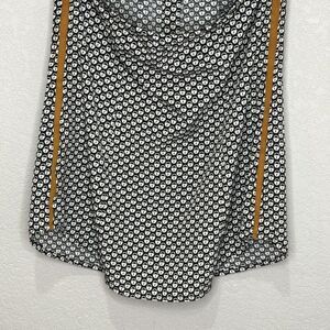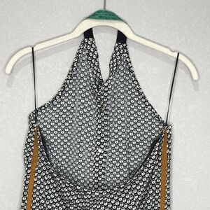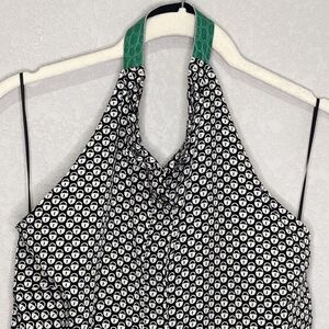 Sachin + Babi Halter Top Womens Medium Black White Lock Print Green Suede Trim