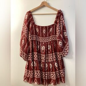 Sachin & Babi Lola Dress Crimson Red Aztec Border Print Cocktail Evening Party