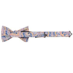 Saddlebred Adjustable Pre-tied 100% Silk Blue Pink Yellow Paisley Bowtie