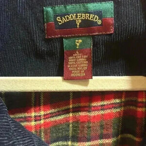 Color blue. 4 outside pockets. Red plaid inside. 100% cotton.Corduroy. NWT