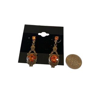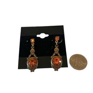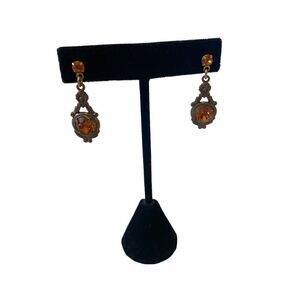 Sadie Green Vintage Faux Amber Stone & Antiqued Gold Tone Drop Earrings