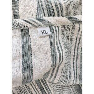 Sage and Cream Striped Textured Popover Blouse Top XL