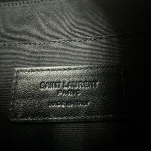 Size: W 11.4" x H 8.7". Saint Laurent Paris Large Embossed Logo Pouch. Constructed from supple leather, this pouch features a stamped logo on the front, top zip fastening, one main compartment and an internal logo patch. Made in Italy.