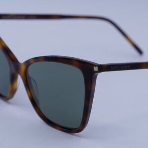 Saint Laurent SL384 002 Sunglasses Havana Cat Eye Frame, Green Lenses
