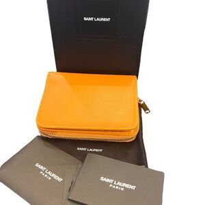 Good condition △SAINT LAURENT PARIS Saint Laurent Paris 562796 Bifold Leather Compact Wallet Wallet Orange Made in Italy Comes with box and storage bag◎ [Used]