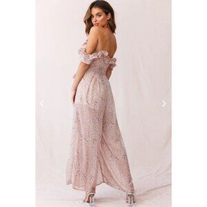 Saint Secrets Jazz Bardot Neckline Split Wide Leg Floral Jumpsuit Blush XS NWT