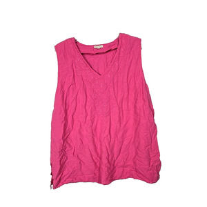 Saint Tropez West Pink Embroidered Linen V-Neck Sleeveless Tank Top Womans 3X