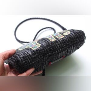 Woven jute. Black. Genuine leather trim.