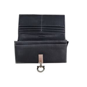 Salvatore Ferragamo Black Pebbled Leather Wallet Italy Read Description