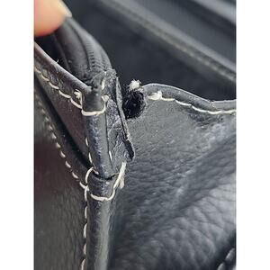 PLEASE NOTE : The inside zipper pocket is completely undone on one side and the inside corner have started to tear as well . A cobbler could repair that . the inside of the buckle is tarnished .