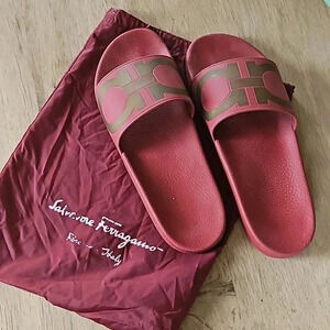 Salvatore Ferragamo Burgundy Slides w/ Dust Bag